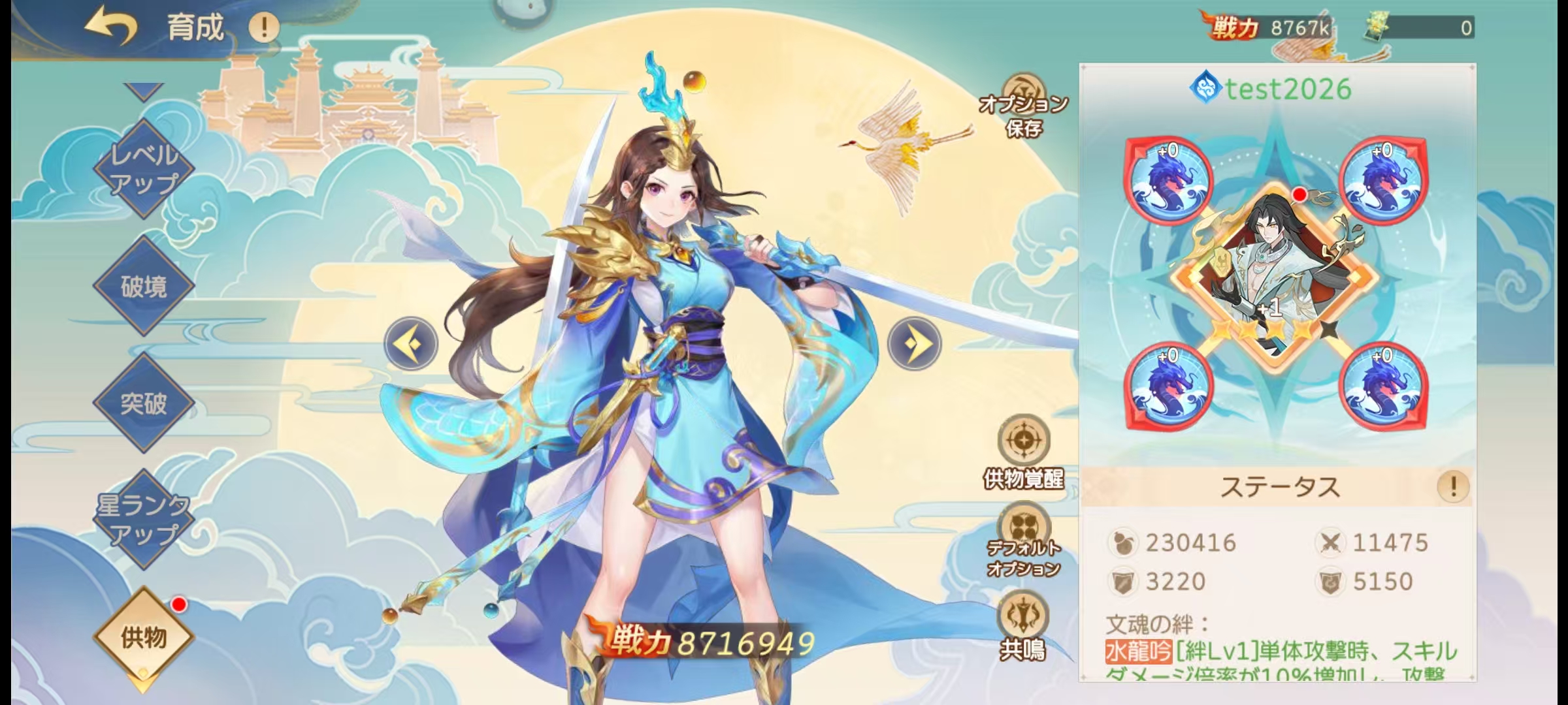 ランクアップすると、新しいステータスを獲得でき、さらに一部のステータスは絆効果を強化できます。ランクアップ時に消費された文魂は、そのレベルに応じた一定数のEXPアイテムとして返還されます。