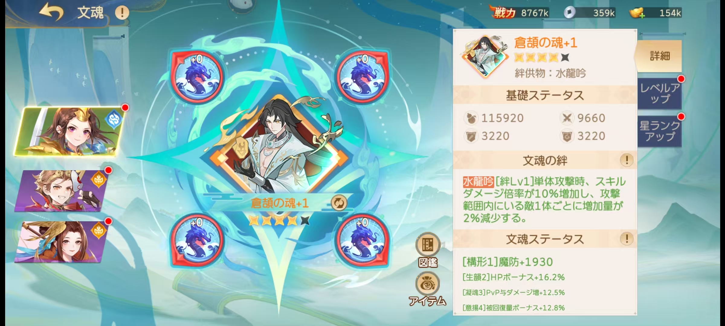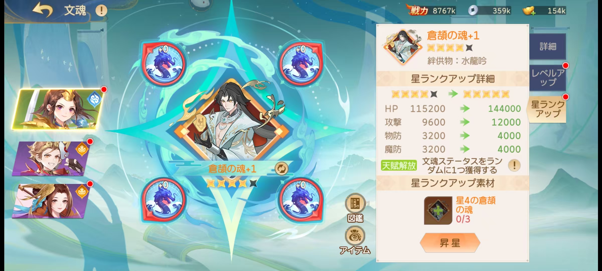 また、条件を満たした文魂を消費することで、文魂をランクアップさせることも可能です。